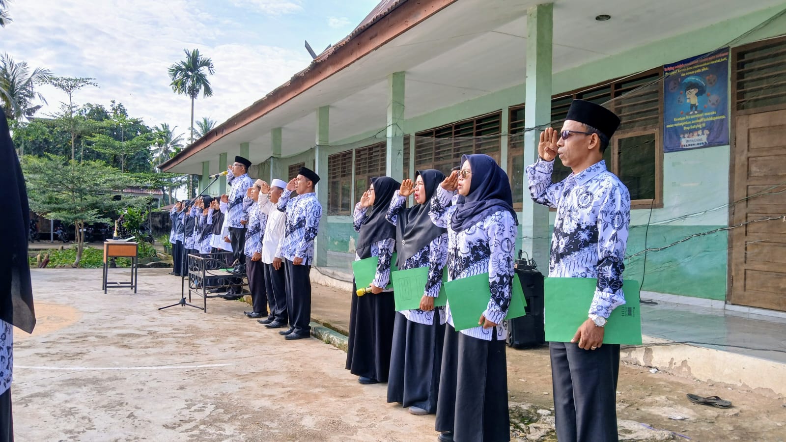 Berbeda dari upacara biasanya, petugas upacara kali ini adalah para majelis guru MTsN 2 Tanjung Jabung Timur. Hal ini menjadi momen spesial untuk menghormati peran dan dedikasi para guru dalam mencerdaskan generasi bangsa.