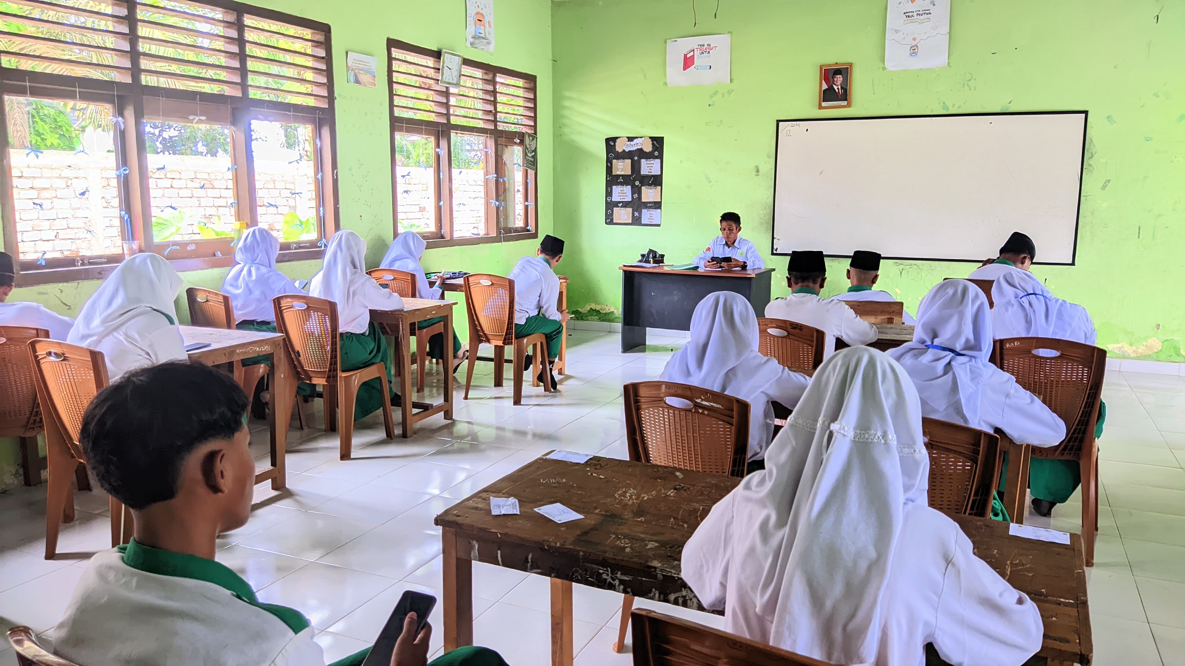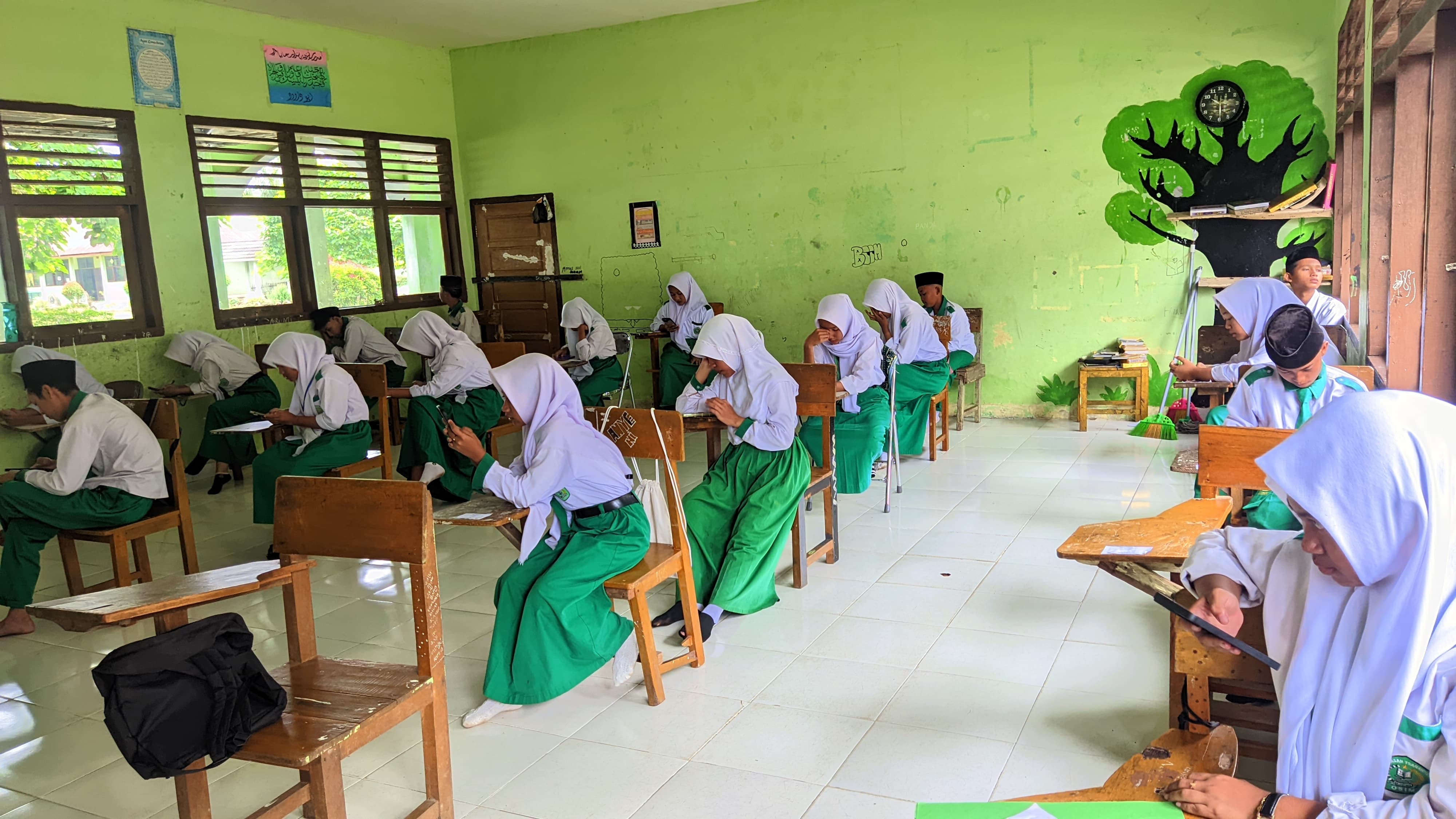 Ujian berlangsung dengan lancar dan tertib di seluruh ruangan. Setelah berakhir pada hari Sabtu, hasil ujian direncanakan akan diumumkan secara online melalui platform resmi madrasah.