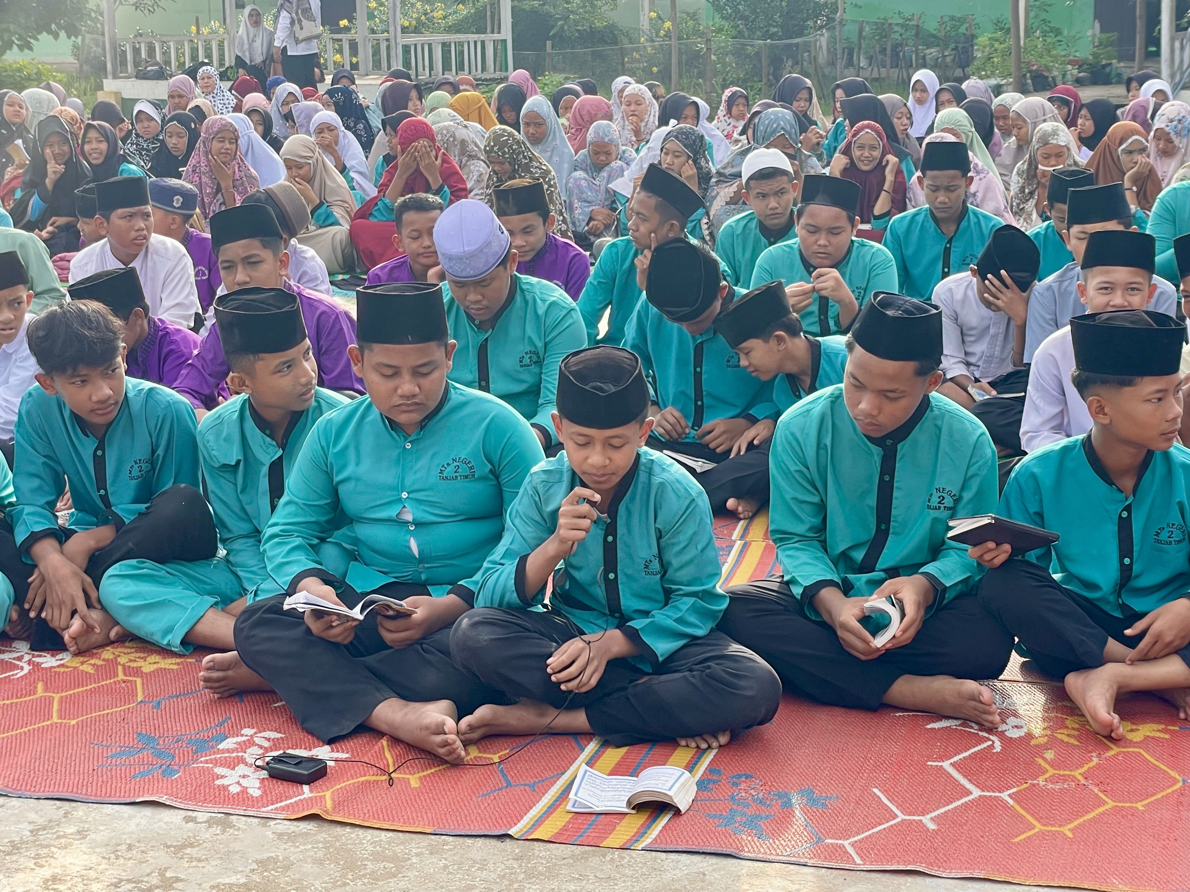 Setiap Jumat pagi, suasana religius menyelimuti MTsN 2 Tanjung Jabung Timur. Seluruh warga madrasah, mulai dari siswa hingga guru, berkumpul untuk melaksanakan kegiatan rutin yang penuh makna spiritual. Kegiatan ini dimulai dengan shalat Dhuha berjamaah, yang menjadi sarana bagi para siswa untuk menanamkan kebiasaan beribadah dan mendekatkan diri kepada Allah SWT.