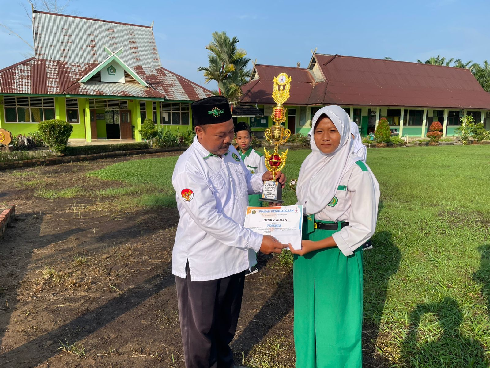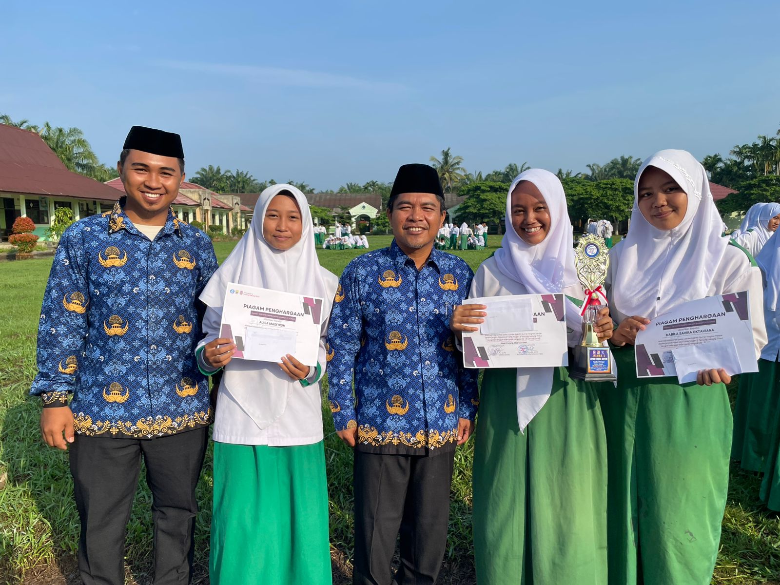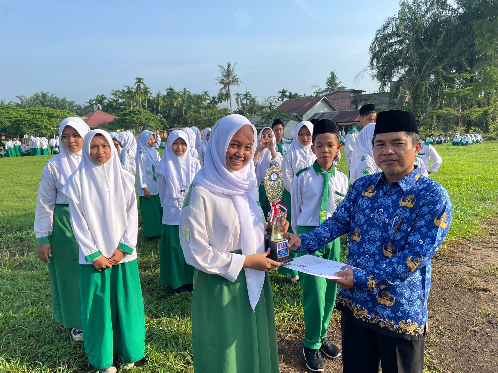 Tanjung Jabung Timur – Suasana lapangan MTsN 2 Tanjung Jabung Timur tampak meriah saat dilaksanakan pembagian hadiah bagi para siswa-siswi berprestasi dalam berbagai ajang perlombaan. Acara ini berlangsung penuh semangat dan kebanggaan, dihadiri oleh para guru, staf sekolah, serta siswa-siswi yang turut menyaksikan momen penghargaan tersebut.
