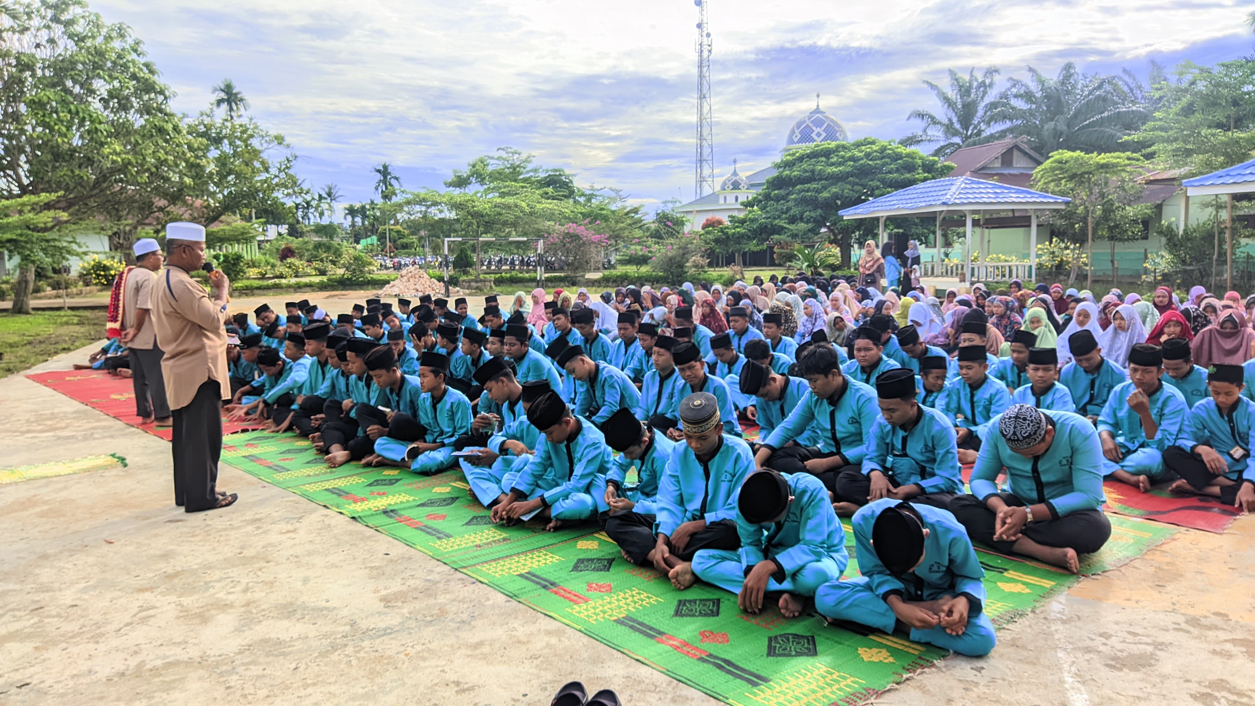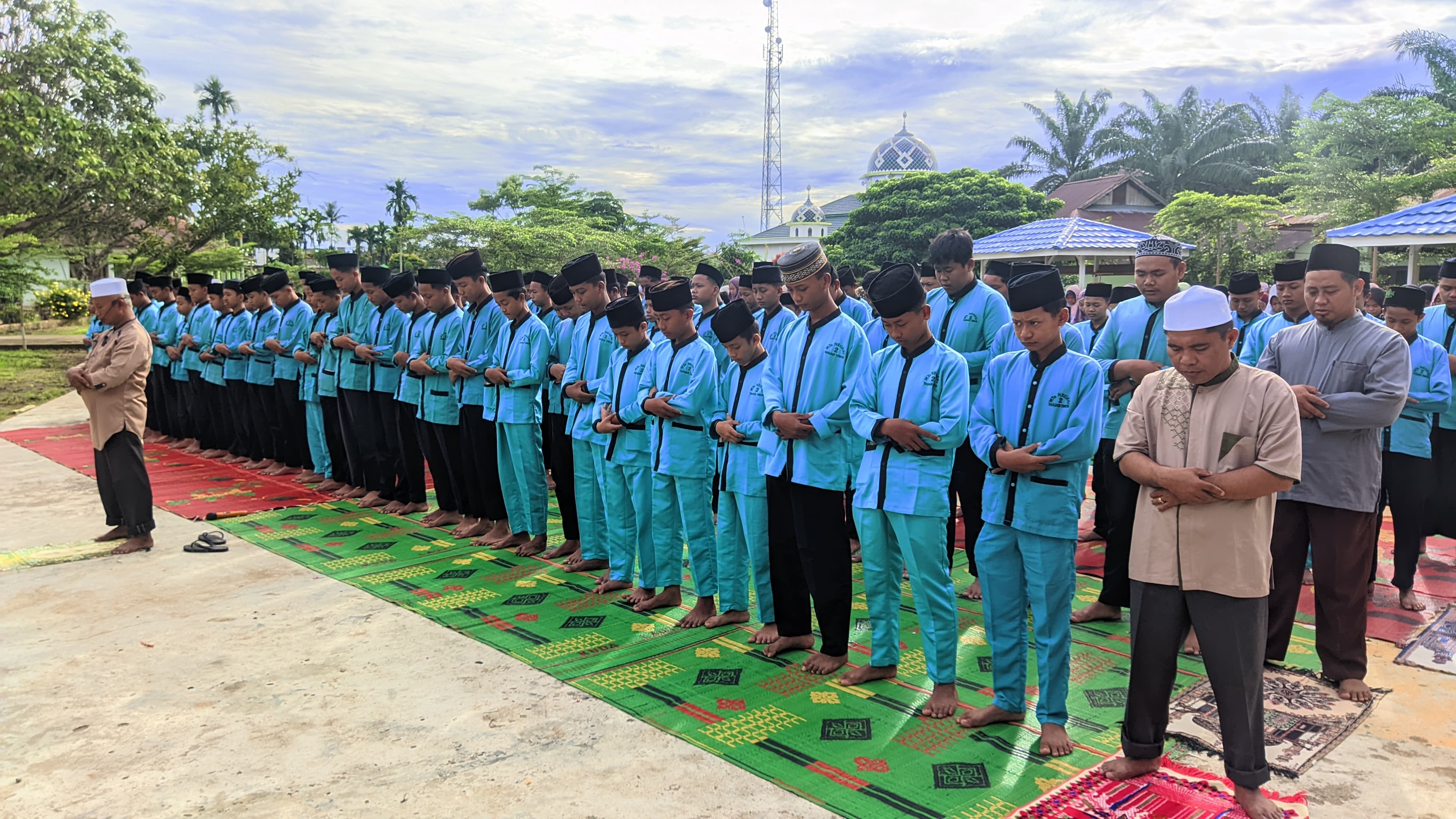 Tanjung Jabung Timur – Dalam rangka meningkatkan keimanan dan ketakwaan di bulan suci Ramadan, MTsN 2 Tanjung Jabung Timur menggelar kegiatan sholat Dhuha berjamaah yang dilanjutkan dengan pembacaan Yasin dan tahlil serta doa bersama. Kegiatan ini berlangsung di lapangan madrasah diikuti oleh seluruh siswa, guru, dan tenaga kependidikan.