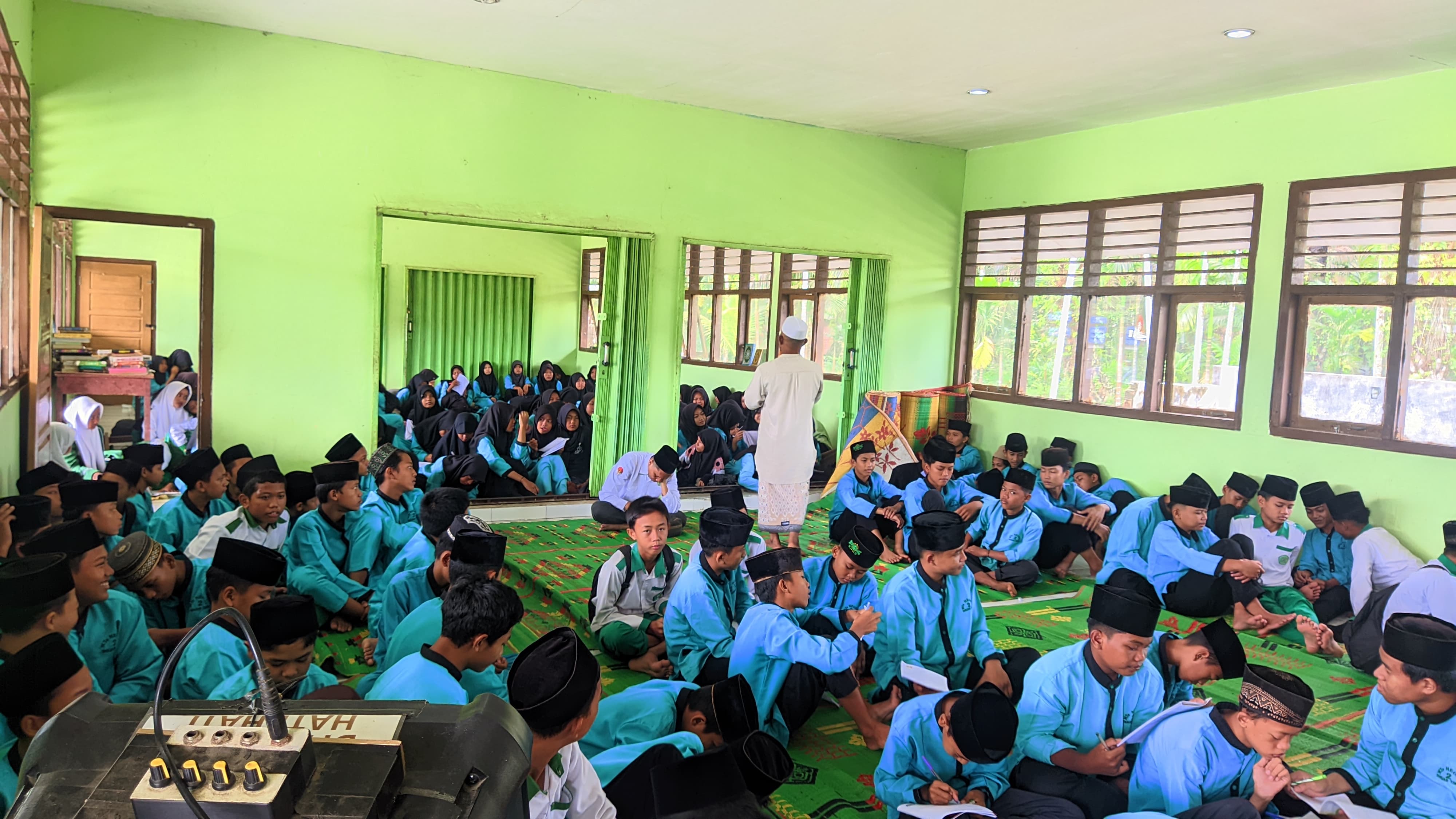 Setelah pembukaan, kegiatan berlanjut dengan sesi materi pertama yang mengangkat tema "Hukum Dasar Puasa Wajib" yang disampaikan oleh H.M. Arfah, M.Pd. Materi ini membahas dasar-dasar hukum puasa, kewajiban menjalankan ibadah puasa, serta keutamaan bulan Ramadhan bagi umat Islam. Para siswa menyimak dengan penuh perhatian dan mencatat poin-poin penting yang dijelaskan oleh pemateri.