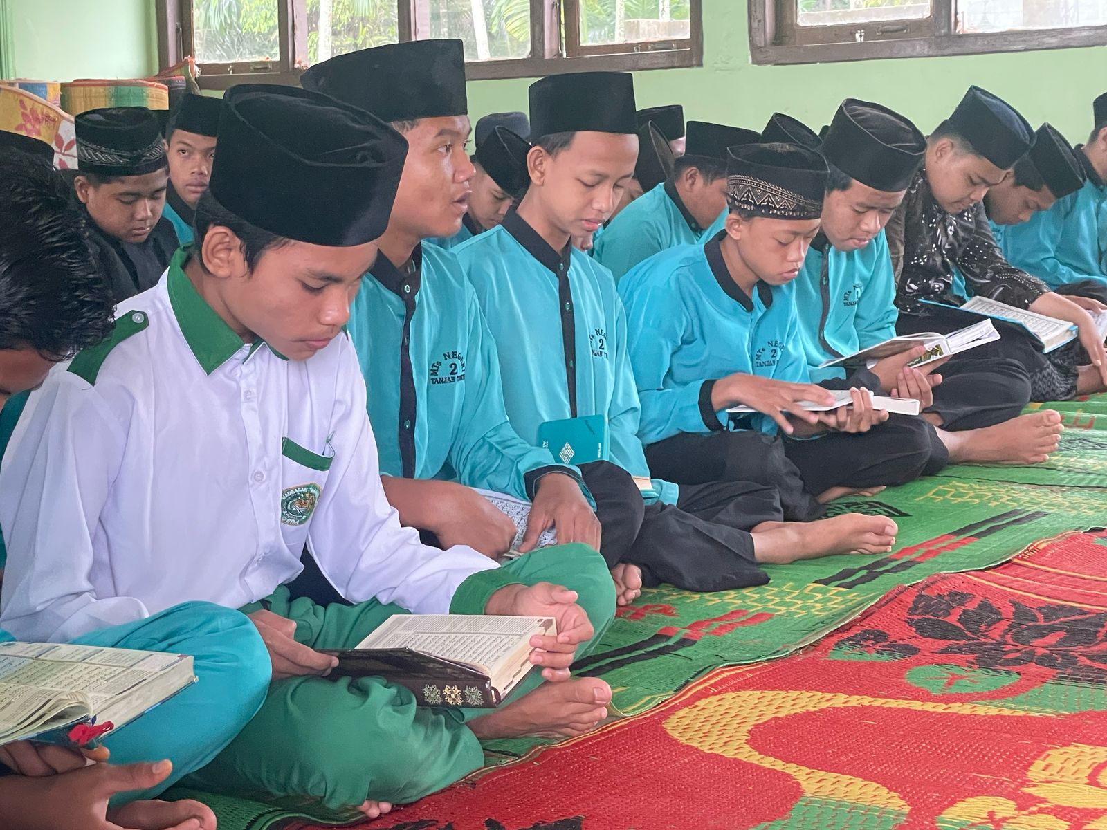 Memasuki agenda berikutnya, seluruh peserta didik mengikuti Tadarus Al-Qur'an yang dipandu oleh Jawiyah, S.Pd. dan Nur Asiah Ritonga, S.Pd. Para siswa tampak antusias membaca ayat-ayat suci Al-Qur'an secara bersama-sama, menambah keberkahan di awal kegiatan Pesantren Ramadhan ini.
