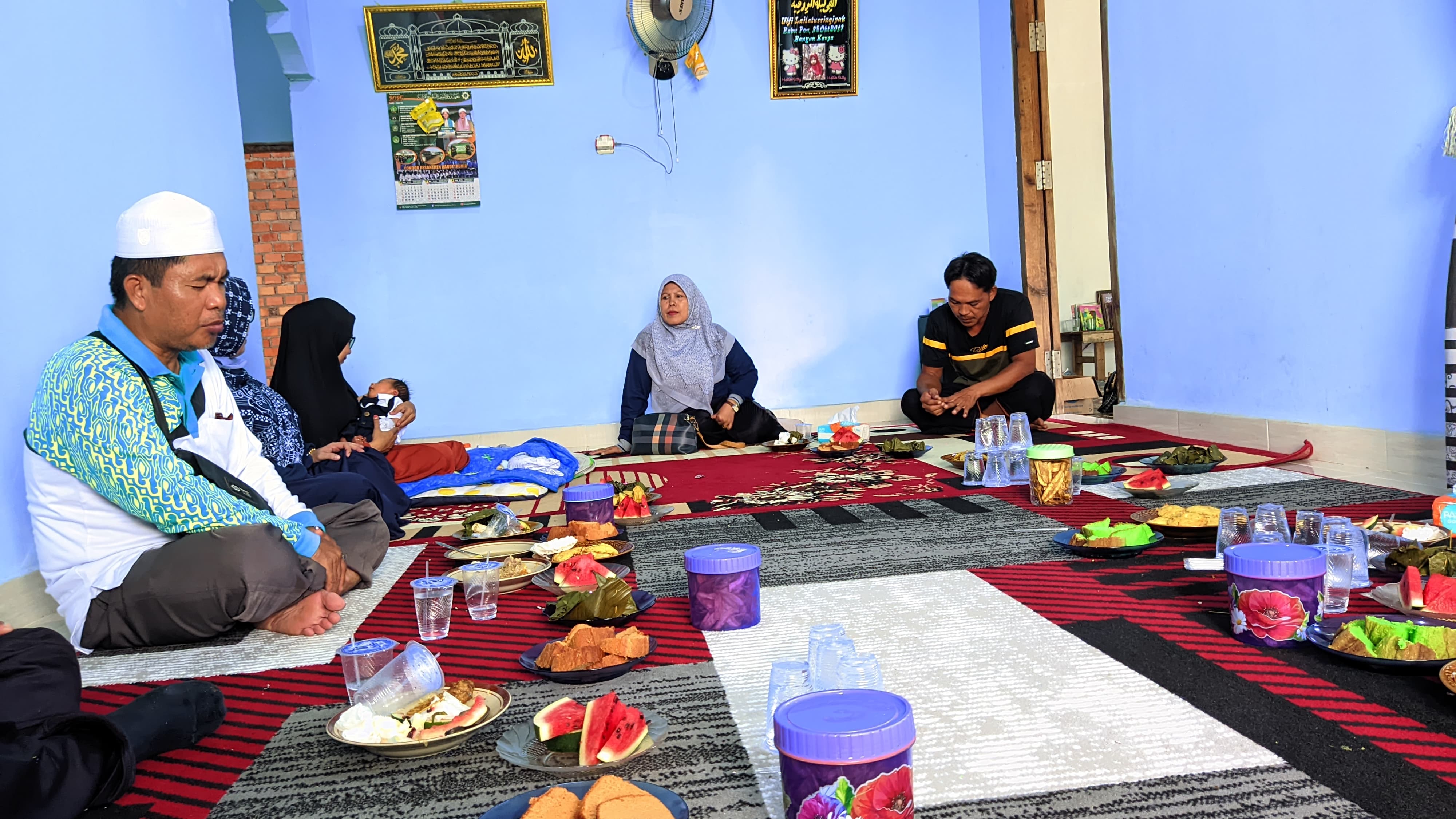 Dalam suasana hangat dan penuh kebahagiaan, rombongan madrasah menyampaikan ucapan selamat kepada Bapak Ali Hanapi beserta keluarga. Doa bersama pun dipanjatkan agar putra yang baru lahir kelak menjadi anak yang saleh, sehat, dan membawa kebahagiaan serta keberkahan bagi keluarga.