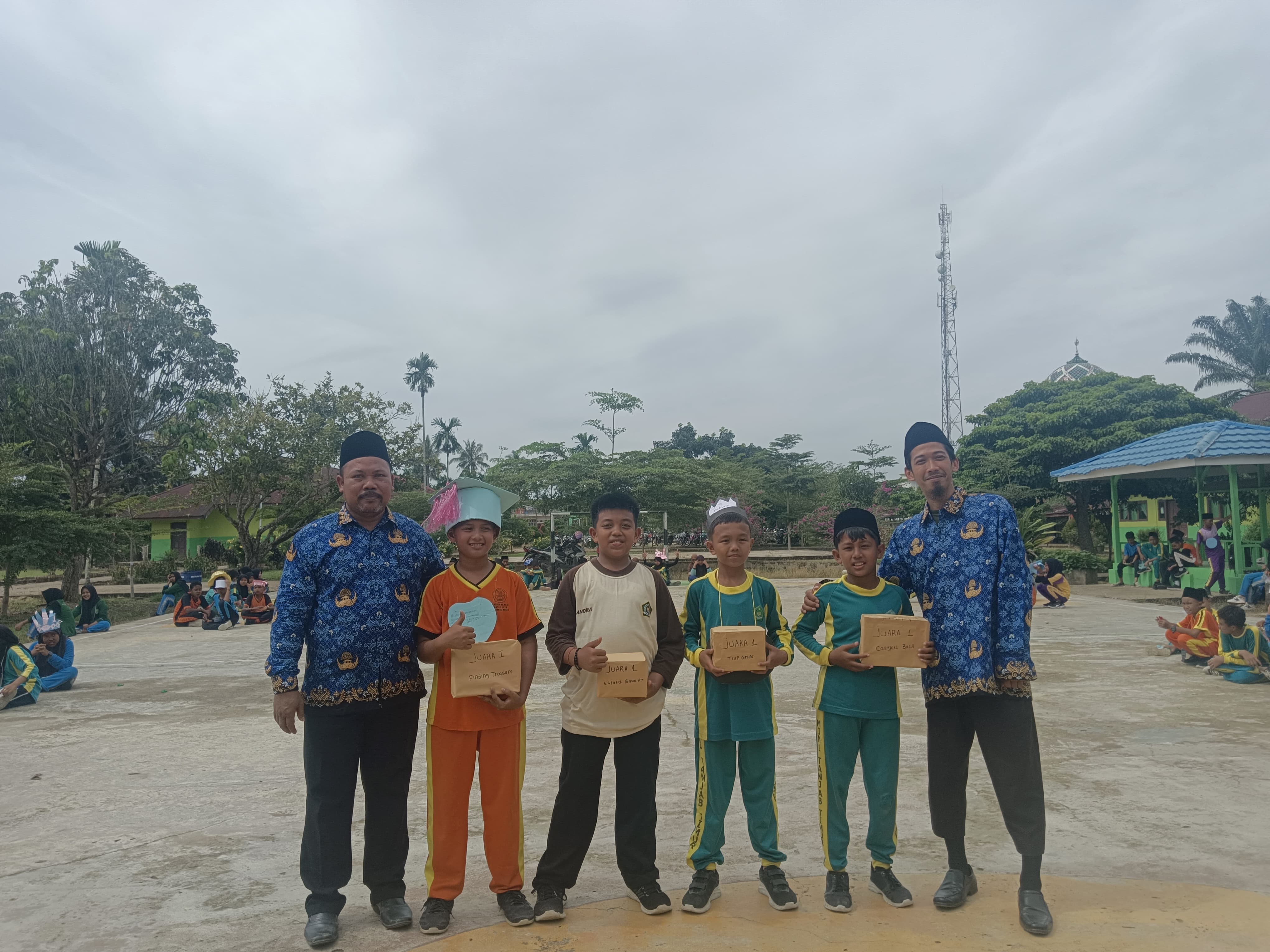 Rangkaian kegiatan dilanjutkan di aula madrasah dengan yel-yel antar kelompok dan games “Finding Treasureâ€. Siswa terlihat sangat antusias menunjukkan kekompakan dan kreativitas kelompok masing-masing.