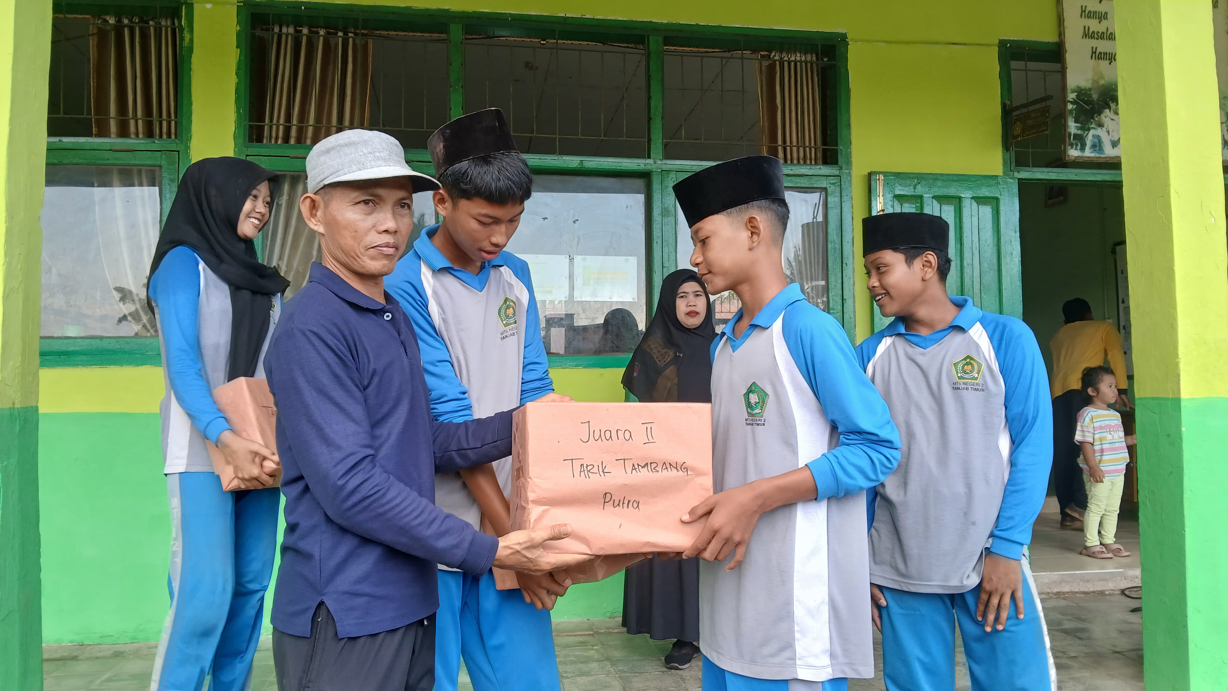 Setelah seluruh rangkaian perlombaan dalam rangka memperingati HUT RI ke-80 selesai dilaksanakan, MTsN 2 Tanjung Jabung Timur menggelar acara pembagian hadiah bagi para pemenang. Suasana tampak meriah ketika para juara dipanggil satu per satu untuk naik ke panggung dan menerima penghargaan.