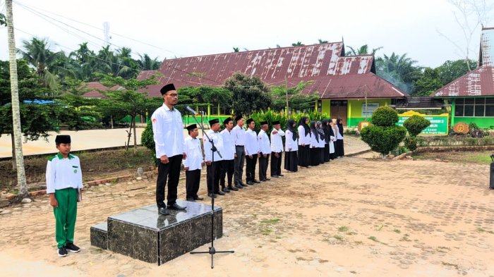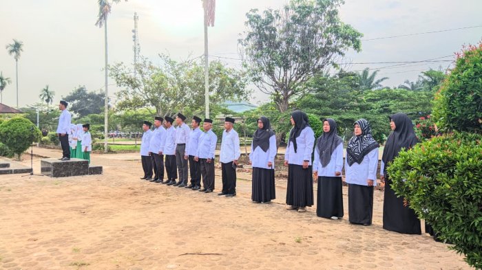 Tanjung Jabung Timur – MTsN 2 Tanjung Jabung Timur melaksanakan upacara bendera pada Senin pagi dengan penuh khidmat. Seluruh siswa, guru, dan staf madrasah hadir mengikuti kegiatan yang rutin digelar setiap pekan ini sebagai bentuk kedisiplinan serta wujud cinta tanah air.
