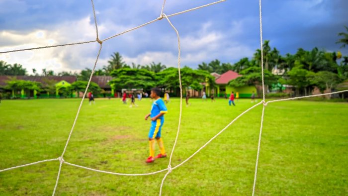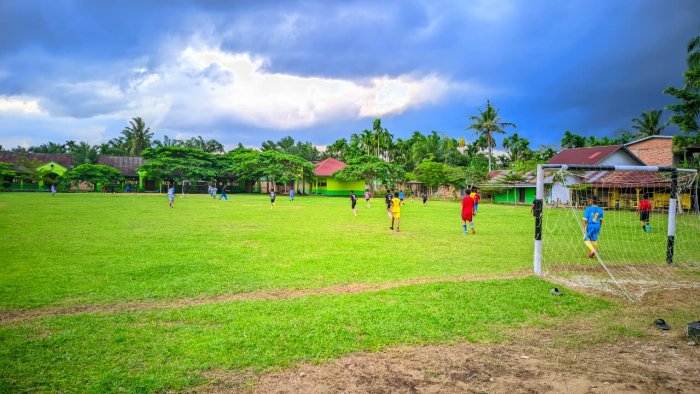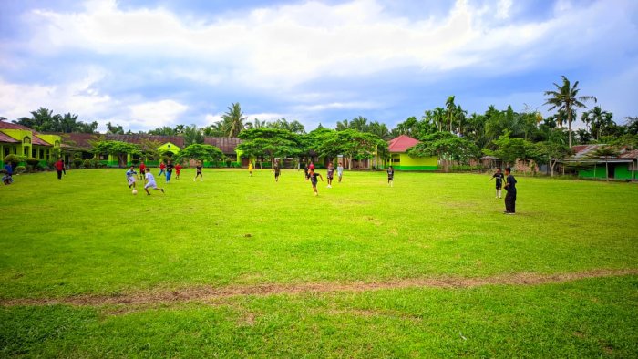Rantau Rasau — Lapangan hijau MTsN 2 Tanjung Jabung Timur sore itu dipenuhi teriakan semangat para siswa yang sedang mengikuti kegiatan ekstrakurikuler bola kaki. Dengan mengenakan seragam olahraga, siswa-siswi tampak antusias berlari mengejar bola, berlatih teknik dasar, hingga mencoba formasi permainan di bawah arahan pembina olahraga.
