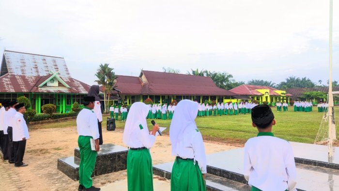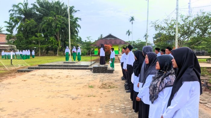 MTsN 2 Tanjung Jabung Timur kembali melaksanakan kegiatan upacara bendera dengan penuh khidmat pada Senin pagi. Dalam pelaksanaan kali ini, Hajrah, S.Pd, selaku guru Bimbingan Konseling (BK), bertindak sebagai pembina upacara.