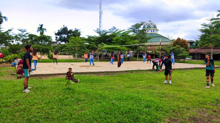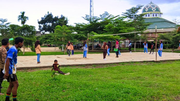 Memasuki sesi berikutnya, peserta mulai diarahkan untuk memahami pola permainan tim dalam bola voli. Mereka melakukan latihan kombinasi passing dan gerak cepat menuju posisi. Setelah seluruh tahapan teknik diselesaikan, kegiatan ditutup dengan pertandingan simulasi antar tim kecil. Melalui sesi ini, peserta berlatih membangun koordinasi dan kekompakan dalam bermain.