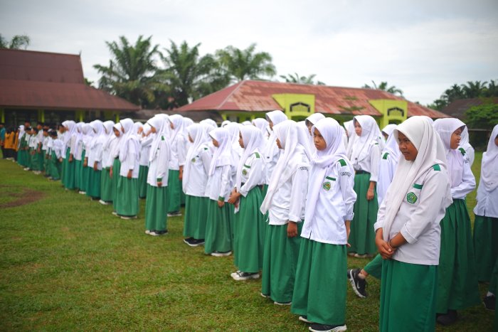 Upacara berlangsung dengan khidmat, ditandai dengan pengibaran bendera merah putih oleh petugas dari MTsN 2 Tanjung Jabung Timur dan pembacaan doa sebagai bentuk syukur atas kemajuan dan keberkahan bagi daerah Tanjung Jabung Timur.
