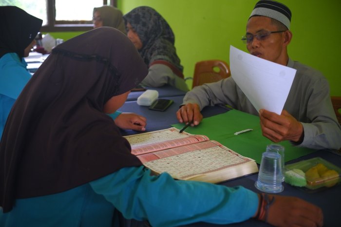 Tes ini dipandu langsung oleh para guru bidang keagamaan dan pembina OSIM. Setiap peserta diberikan kesempatan membaca beberapa ayat Al-Qur’an, kemudian dinilai dari ketepatan tajwid, kelancaran, serta sikap selama membaca.