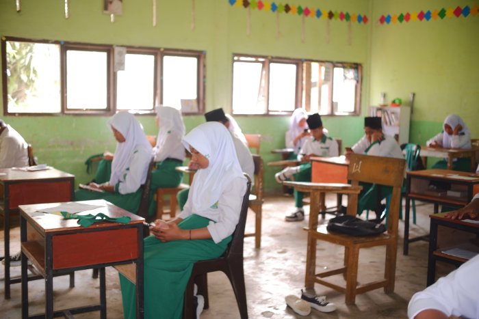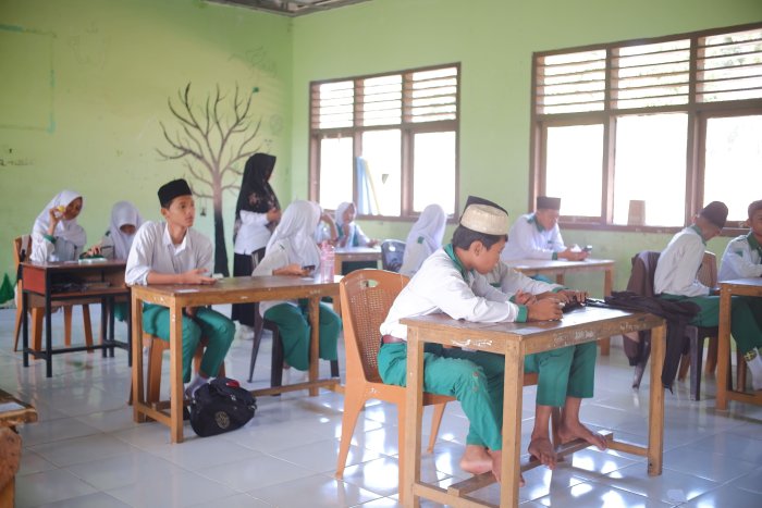 Tanjung Jabung Timur – Ratusan peserta didik MTsN 2 Tanjung Jabung Timur tengah mengikuti Asesmen Sumatif Akhir Semester (SAS) Ganjil Tahun Pelajaran 2024/2025 dengan metode digital penuh. Para siswa mengerjakan seluruh soal ujian menggunakan smartphone Android dan perangkat komputer/laptop di bawah pengawasan ketat.