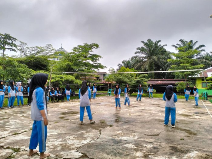 Tidak kalah seru, cabang lomba bola voli putri juga menyuguhkan pertandingan yang penuh semangat dan sportivitas. Para siswi menunjukkan kemampuan teknik dasar permainan bola voli dengan baik, mulai dari servis, passing, hingga smash yang terarah. Kekompakan dan komunikasi antar pemain menjadi salah satu faktor utama dalam jalannya pertandingan, sehingga menciptakan permainan yang menarik dan menghibur.